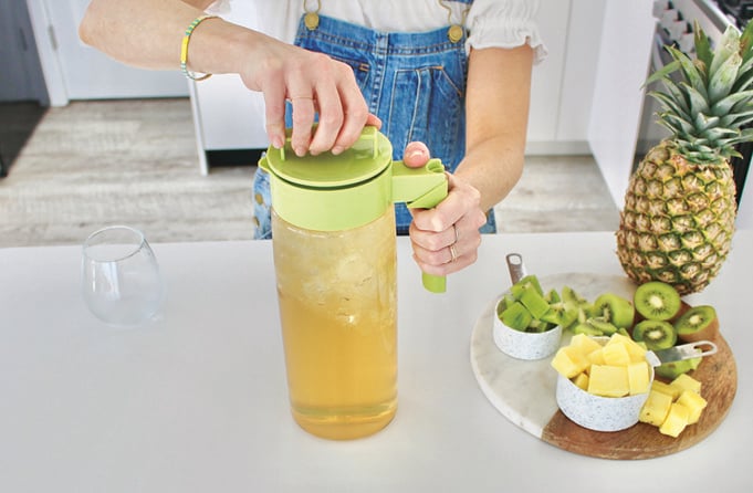 Our pitchers are constructed in durable Eastman Tritan™ plastic with a BPA-free, airtight lids and silicone handle.